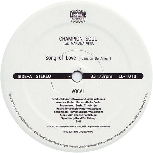Champion Soul Ft. Mariana Vera - Song Of Love (Cancion De Amor) (12")