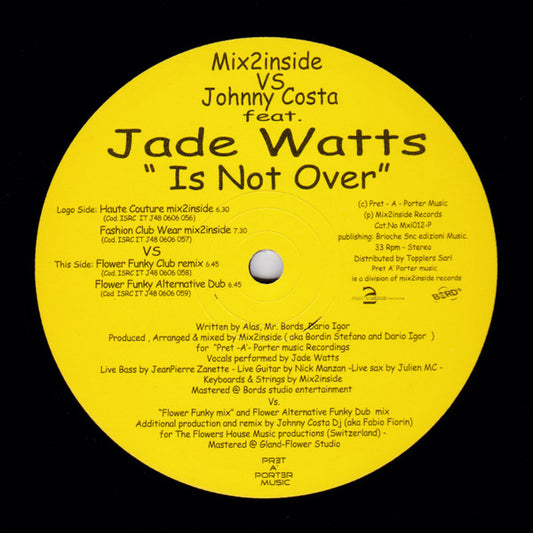 Mix2Inside vs. Johnny Costa (The Flower)* Feat. Jade Watts - Is Not Over (12")