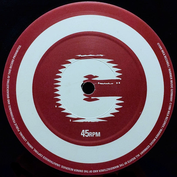 Side A plays plays at 45 RPM & side B plays at 33 ⅓ RPM. ℗ 1998 Wea Records / Warner Music Germany. © 1998 Wea Records / Warner Music Germany. Made in the U.K. Promo copy only - not for resale. Issued in a black die-cut sleeve with a purple/white die-cut sleeve applied to the front.
