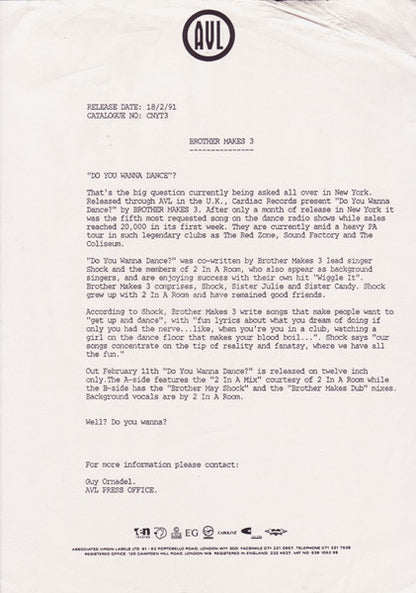Brother Makes 3 - Do You Wanna Dance? (12")