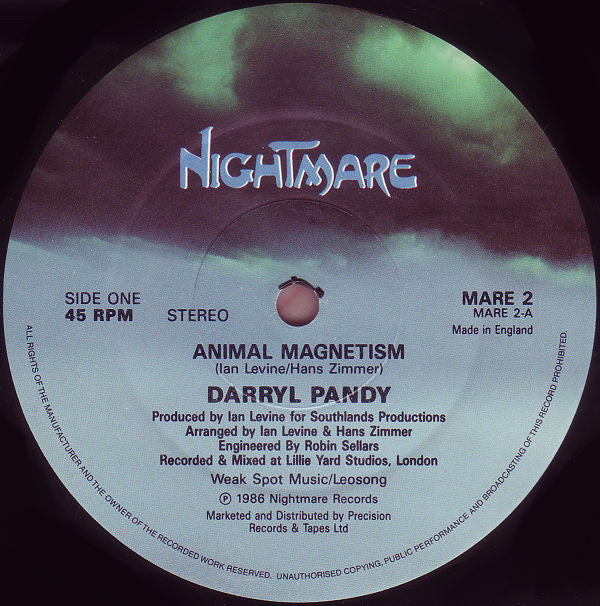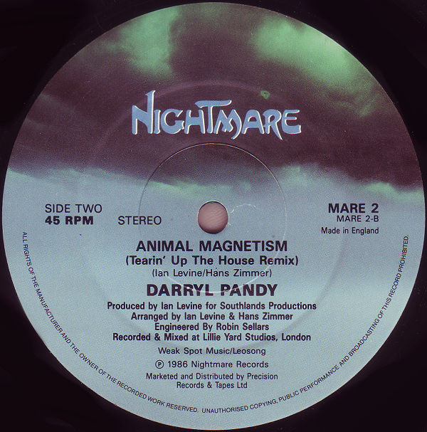 Sleeve: Produced for Southlands Productions Limited in association with D J International, U.S.A. Recorded & mixed at Lillie Yard Studios, London (c) 1986 Weak Spot Music/Leosong (p) 1986 Nightmare Records Labels: Weak Spot Music/Leosong. ℗ 1986 Nightmare Records 1st. cat. # on the labels, 2nd. on the sleeve.