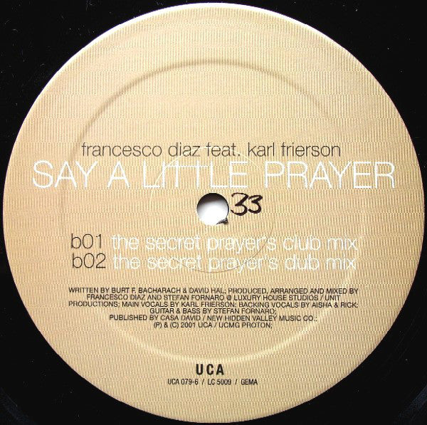 Francesco Diaz Feat. Karl Frierson - Say A Little Prayer (2x12")