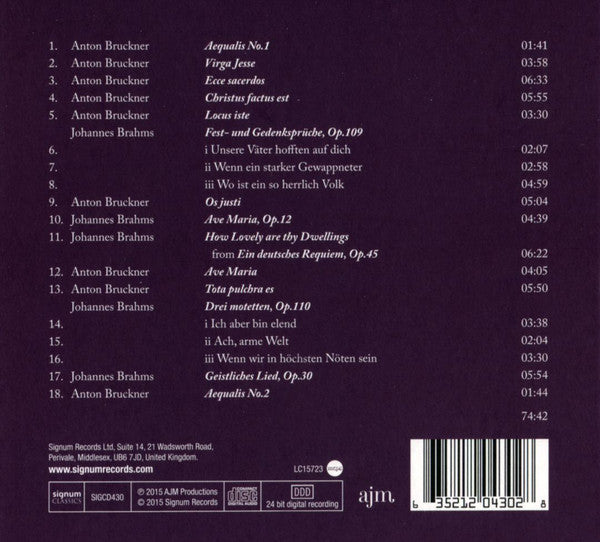 Johannes Brahms, Anton Bruckner, Tenebrae - Motets (CD)